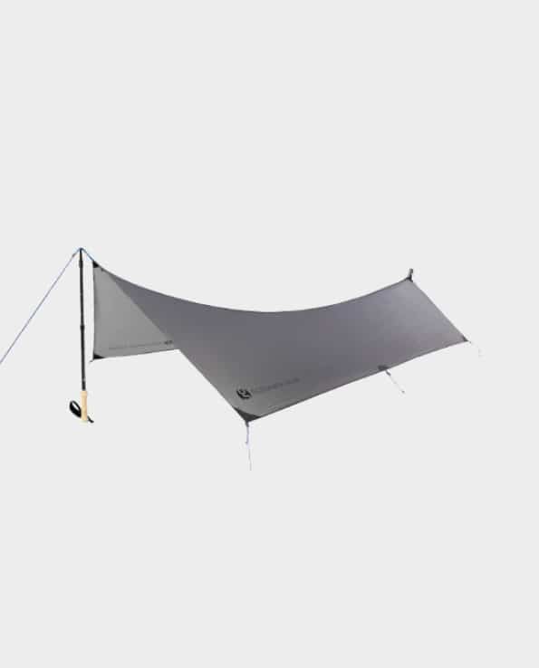 La lona individual para senderismo Solo Tarp está construida con un tejido de nailon de 10 deniers de alta densidad impregnado de silicona por un lado (Sil) y una mezcla de UTS (Ultra Tear Strength) por el otro.