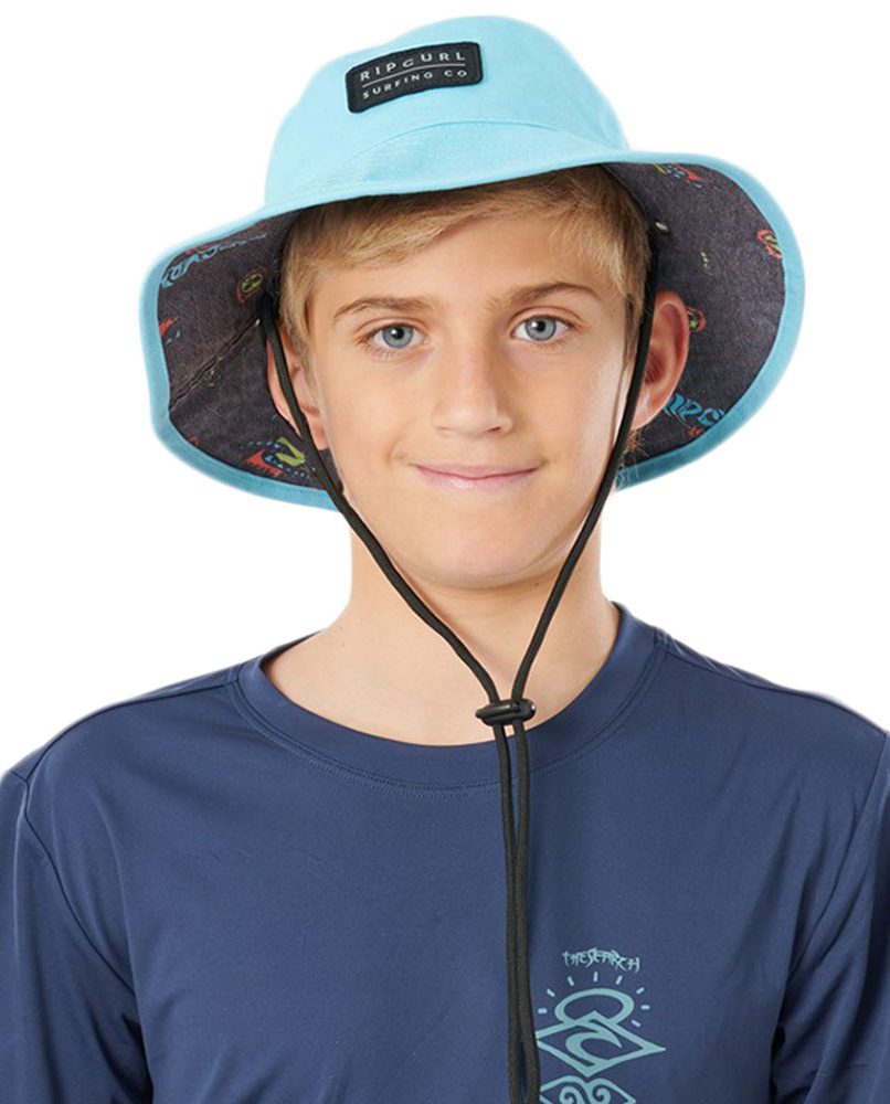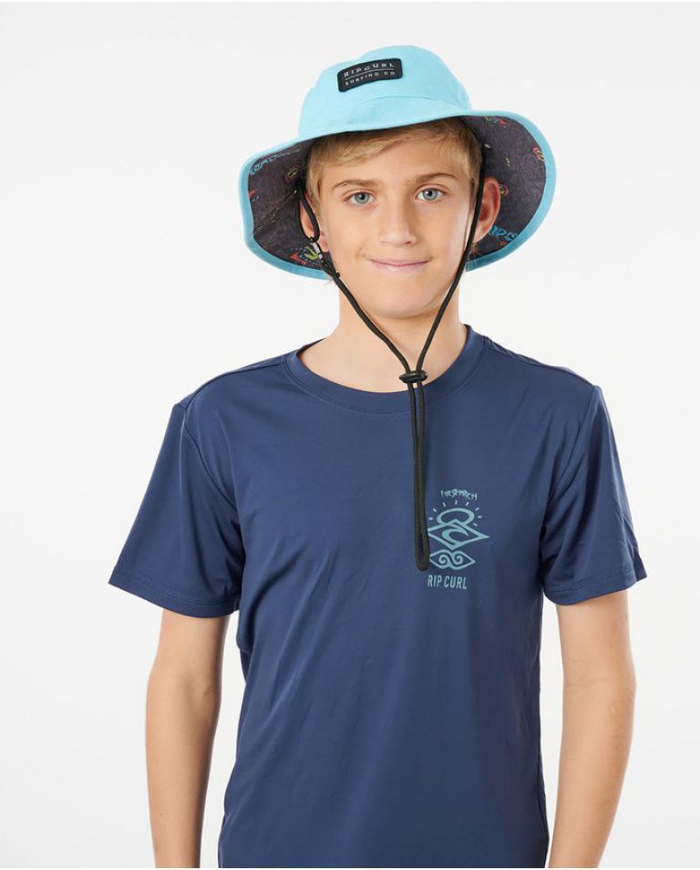 Sombrero Rip Curl Revo Valley Mid Brim-Boy. 100% algodon, cuerda ajustable e insignia tejida con logo de la marca, reversible en colores vivos. El sombrero de ala media Reversible Valley es un auténtico dos en uno ideal para proteger a los mas peques los dias de sol.