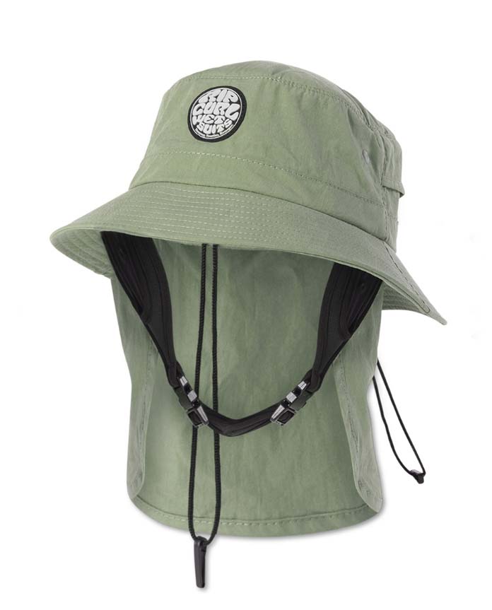 Sombrero Rip Curl Wetty ( varios colores), composición: 100% Poliéster, correa de neopreno para la barbilla con clip de plástico, insignia de alta densidad en la parte delantera, paneles de ventilación de malla traseros, Ala suave y solapa de cuello desmontable.