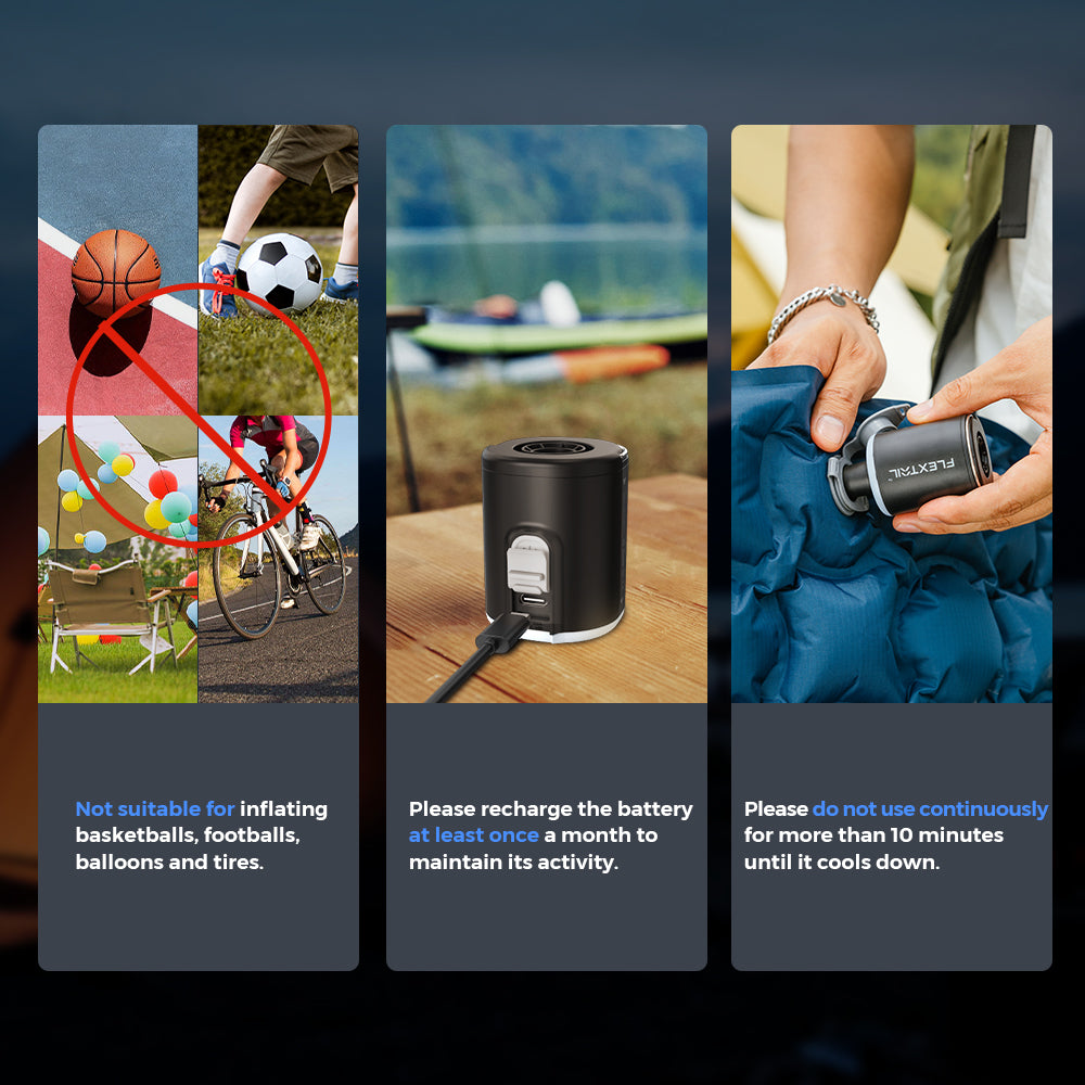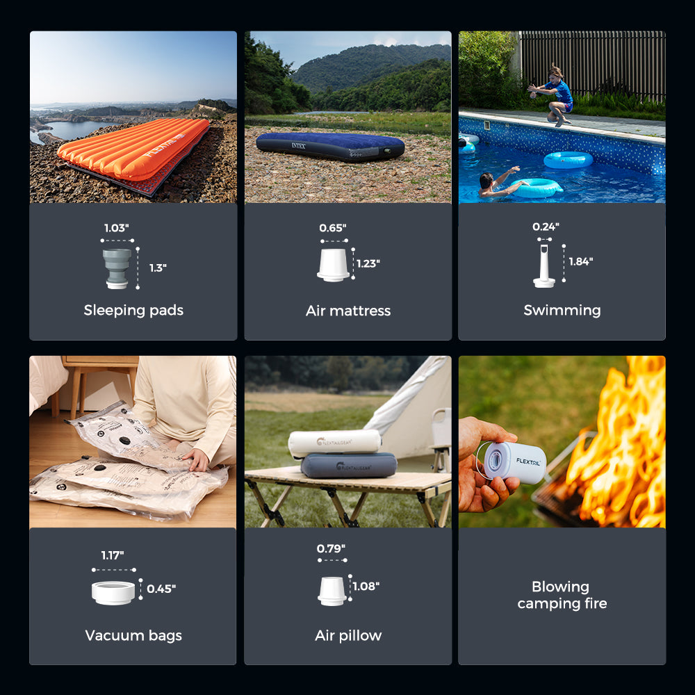 – Apto para inflar colchones sencillos, almohadas, aislantes y juguetes inflables.