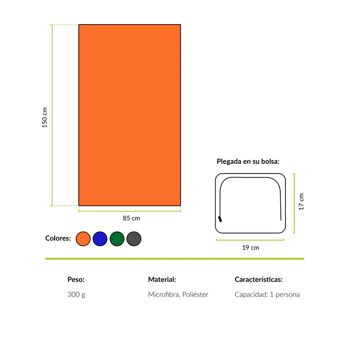 La toalla de microfibra Elqui es suave, absorbente, portátil y cuenta con tejido antimicrobiano para evitar malos olores, ideal para paseos, campings y deportes. Compacta, Liviana secado rapido y sin olores.