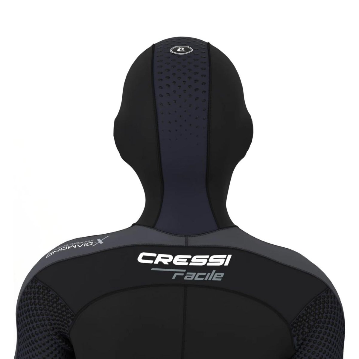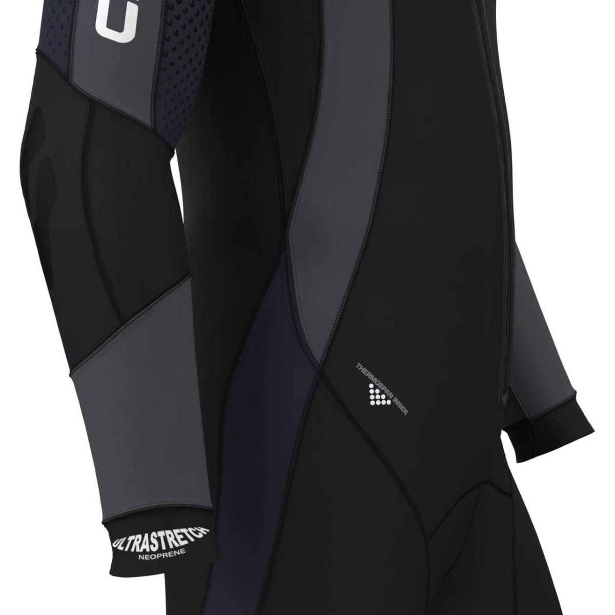 El sistema Water Stop System cuenta con un peto interno ultraelástico que crea una segunda capa de protección térmica y minimiza la entrada de agua en la zona del pecho. Esto ayuda a mantener la temperatura corporal central, especialmente alrededor de los órganos esenciales. Los puños y tobillos de doble capa con cremallera reducen aún más la entrada de agua y facilitan la colocación del traje en las manos y los pies. Los paneles reforzados X-DIAMOND protegen los hombros, los glúteos y las rodillas de la abrasión causada por las correas del chaleco y las superficies rugosas. La capucha de neopreno de 5 mm cuenta con una válvula Air Free que libera el aire atrapado que se ha filtrado en otras partes del traje.