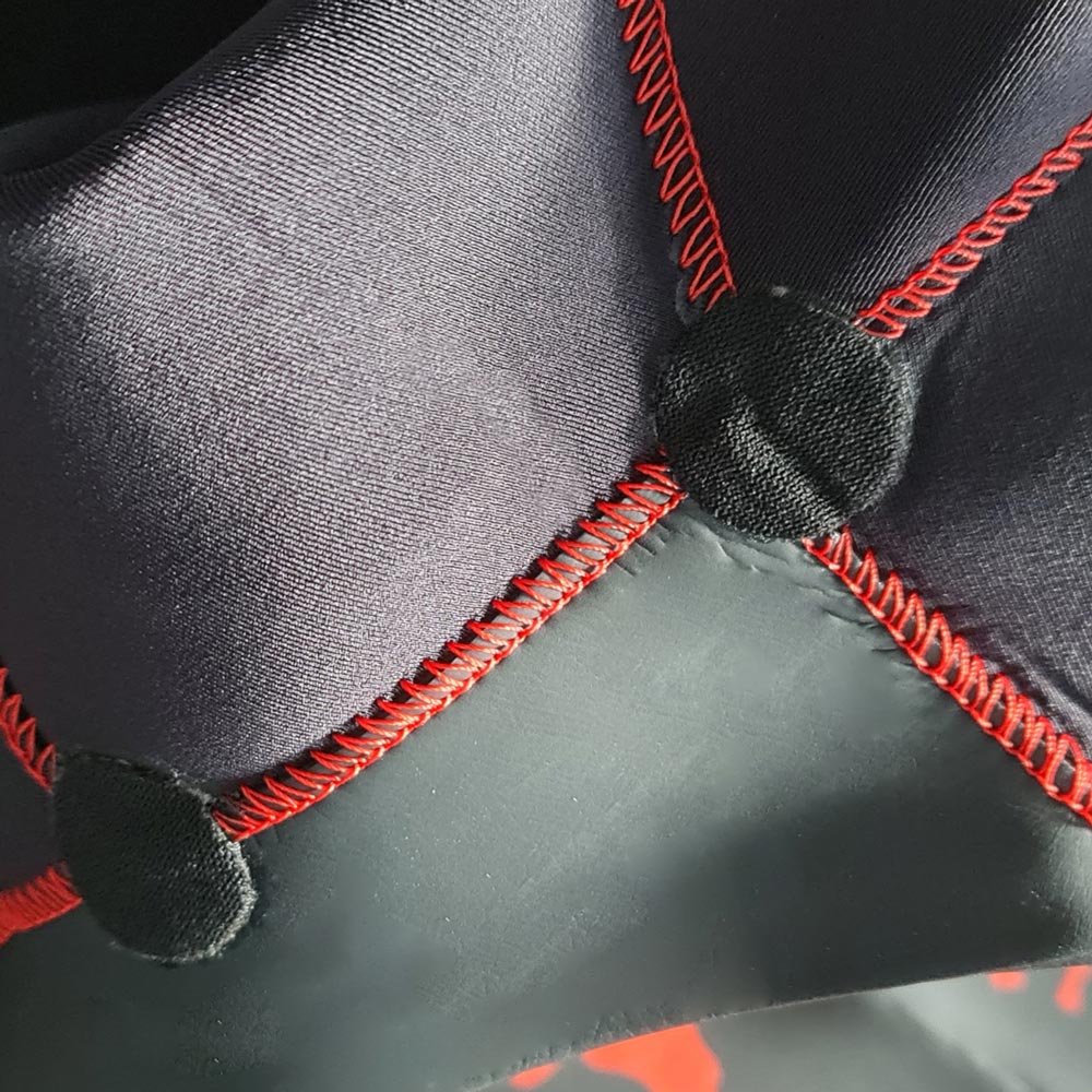 - Neopreno de densidad media con acabado exterior liso y tratamiento hidrófugo que garantiza un nivel de hidrodinámica excepcional y una buena resistencia a desgarros.