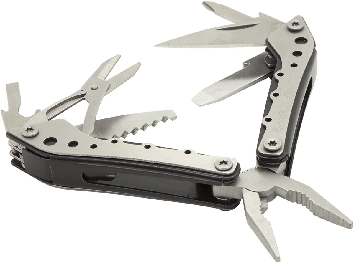 True Utility MiniMulti es una herramienta múltiple 10 en 1 inteligentemente diseñada, con un marco delgado para facilitar su transporte y uso rápido. Fabricado en acero inoxidable de grado 420 con placas de cubierta de fácil agarre, el MiniMulti es fuerte, confiable y cómodo de usar. Al igual que con todos nuestros productos, esta herramienta múltiple está empaquetada en un estuche resistente a la intemperie y reutilizable, lo que significa que puede usarla para guardar sus preciados objetos de valor.