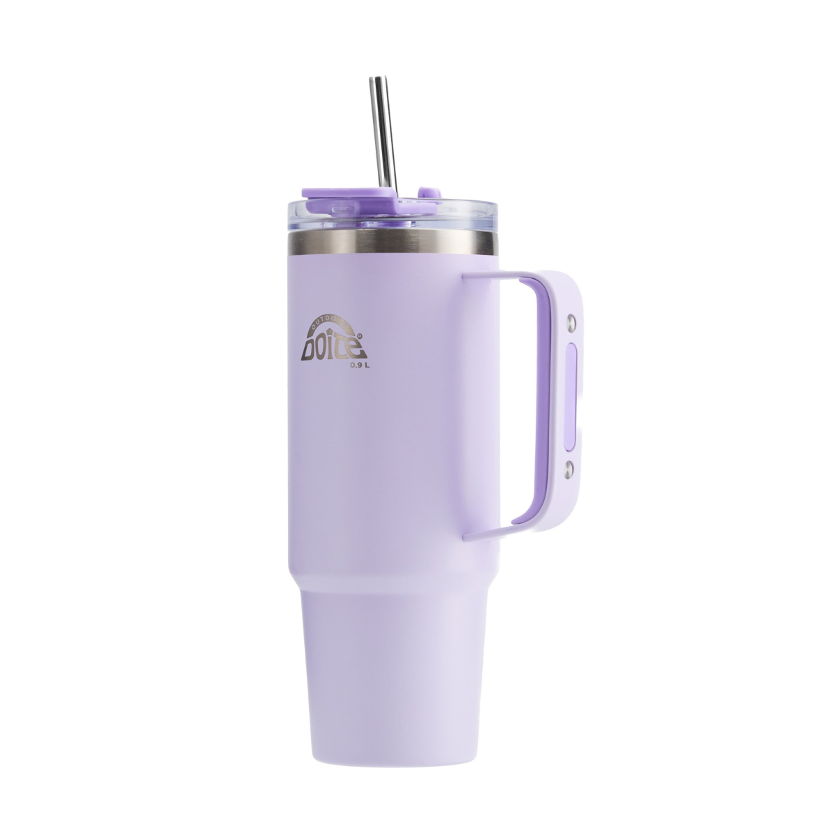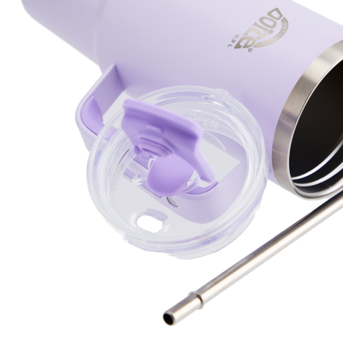 Esta botella térmica con bombilla de acero inoxidable es perfecta para bebidas calientes o frías. Viene con una práctica asa para llevarla fácilmente.