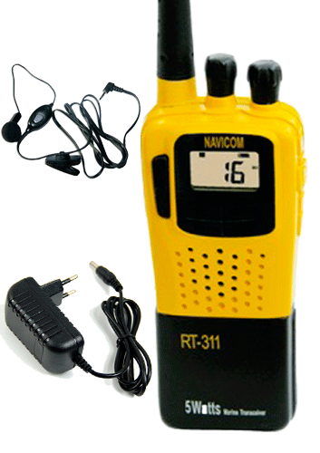 VHF marino portátil NAVICOM RT 311 PACK, de poco volumen y grandes prestaciones.