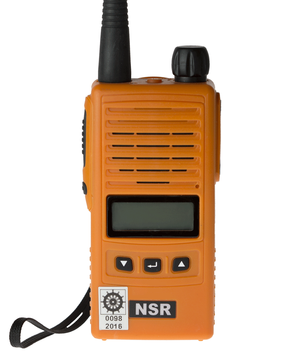 VHF NSR NTW-1000 es un radioteléfono portátil que cumple con los estrictos requisitos y requerimientos del GMDSS para radios portátiles VHF para la seguridad en el mar y para barco de supervivencia.
