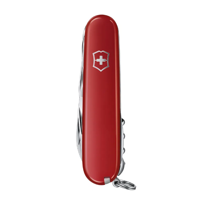 Navaja de bolsillo mediana para caza. Cuando escuche hablar de la Navaja Suiza, es probable que venga a su mente el recuerdo de la legendaria navaja para oficiales. Esa leyenda sigue viva con la navaja de bolsillo Huntsman. Con la incorporación de unas tijeras y un serrucho para madera, usted está listo para cortar casi cualquier cosa. Cuando llegue el momento de desconectarse y alejarse de los caminos más recorridos, siempre querrá llevar una Huntsman en su bolsillo.