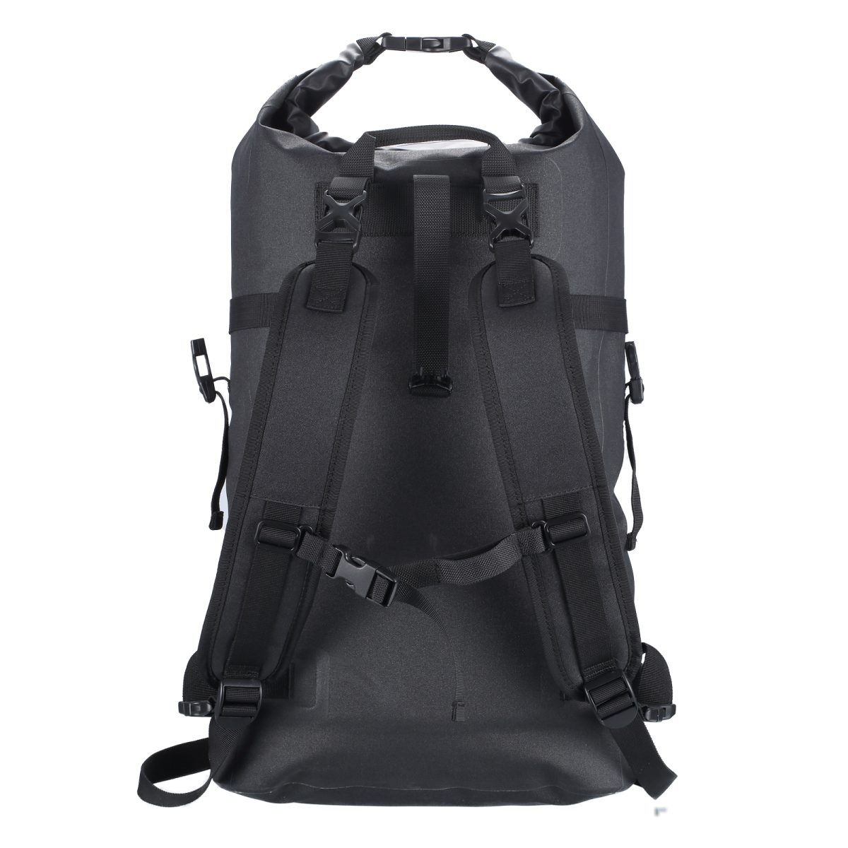 La bolsa cuenta con un resistente sistema de cierre enrollable y se puede transportar abrochando las hebillas en la parte superior o usando las correas de hombro para llevarla como una mochila.