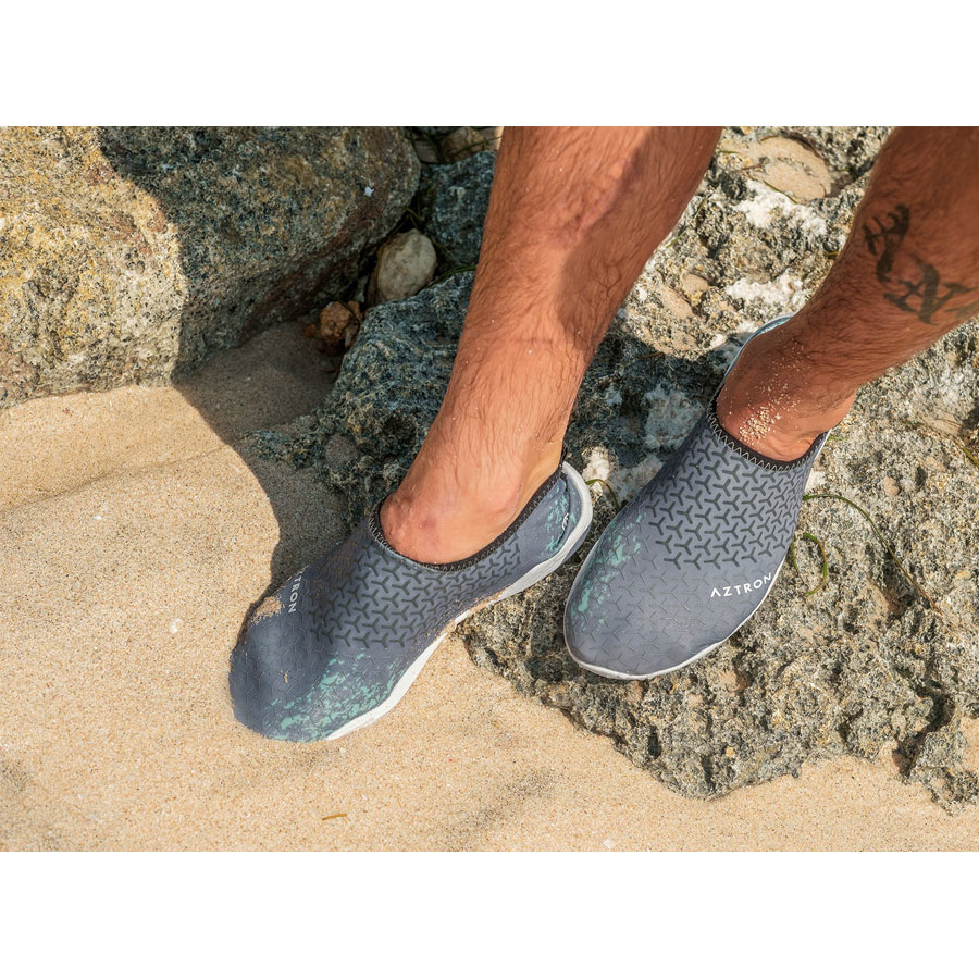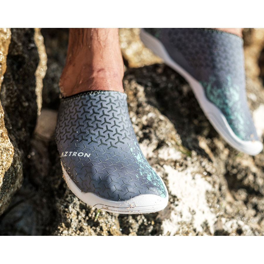 Los zapatos para agua Aztron Gemini está construida con una suela delgada para ofrecer una mejor sensación al pie. Esta estructura de suela es súper liviana, y ofrece al mismo tiempo un gran agarre. Con orificios de drenaje en la parte inferior para permitir la salida de agua y aumentar su transpirabilidad y secado rápido. El sistema de ventilación tiene una malla en la parte inferior que también actúa como un filtro para evitar que entre arena o guijarros. La colección Gemini está hecha con una tela especial muy confortable y transpirable que brinda una sensación suave al pie. También se seca rápidamente lo cual ofrece un ajuste más fresco y seco.